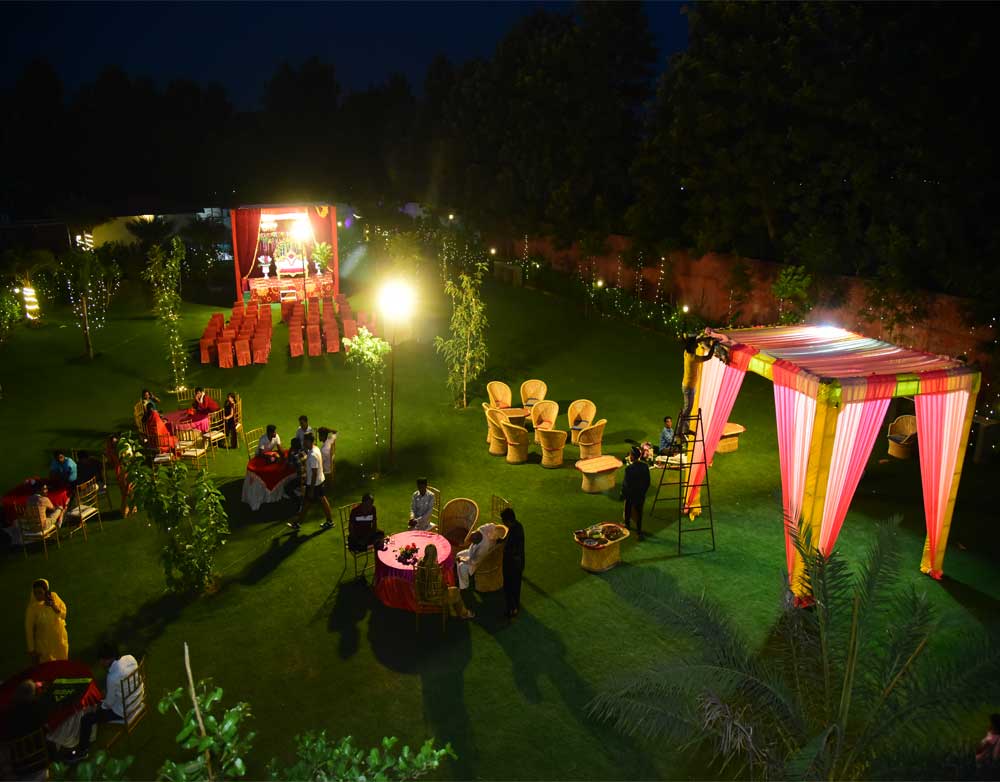 The sprawling grounds at this farmhouse in Manesar can contain the laughter, fun and frolic of over 1000 of your guests. With our facilities and expertise, we naturally become the best wedding venue near Delhi! After all, Aroma Green Farm, at Manesar is our best kept secret for hosting your special lifetime events.