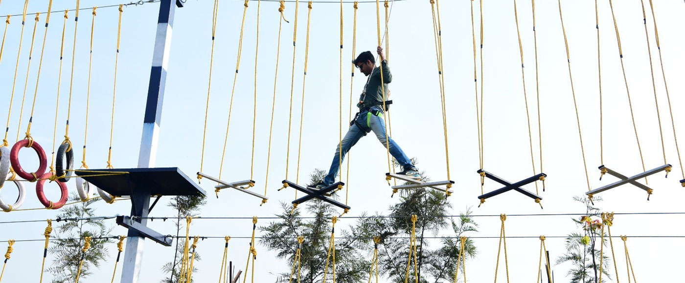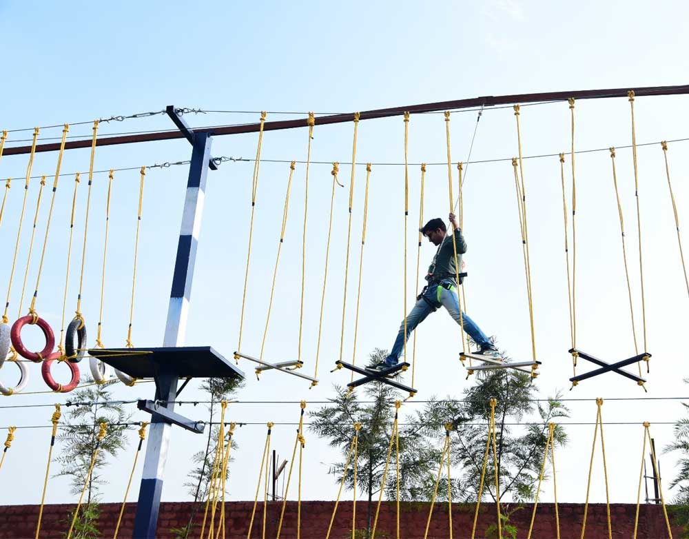 Outdoor Activities: High course activity, Hanging tyre, X Bridge, Catwalk, Suspension bridge, Commando bridge, Parallel rope, Burma bridge, Zigzag bridge, Tyre bridge and Net crossing.