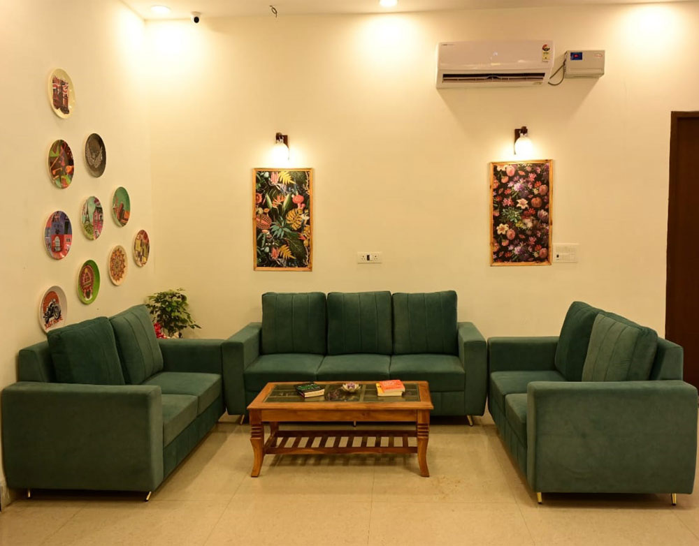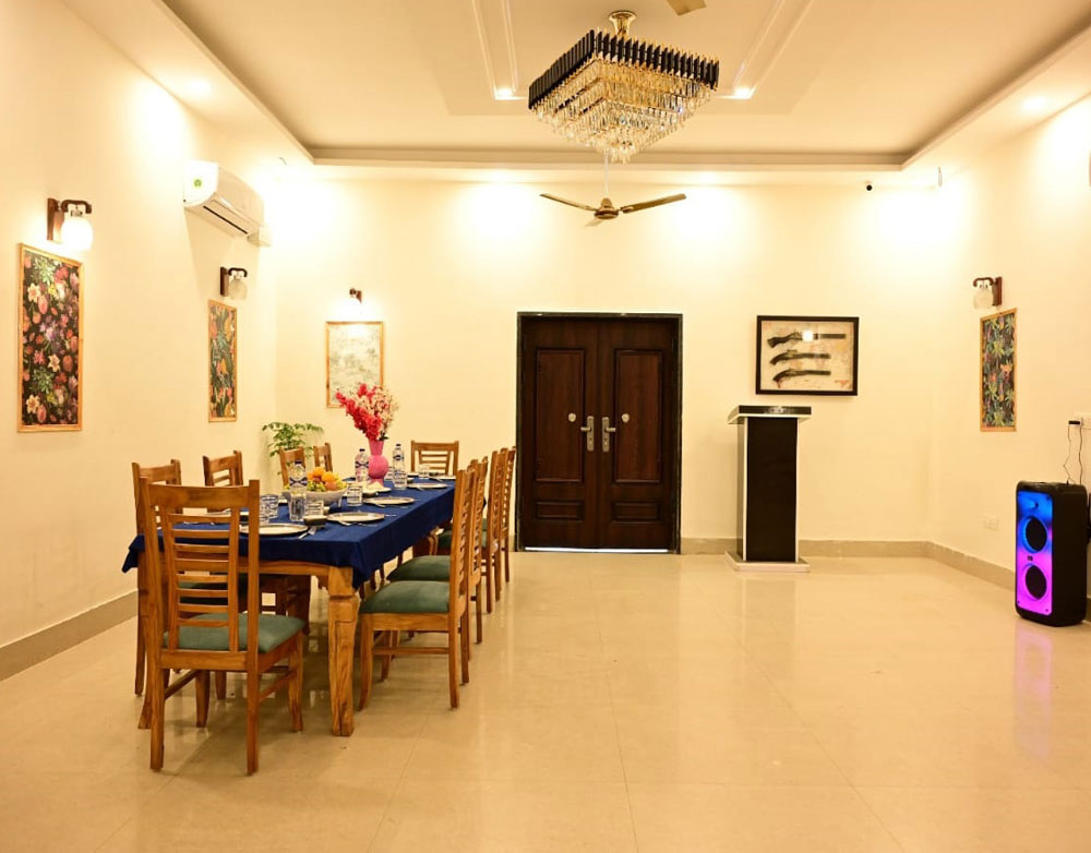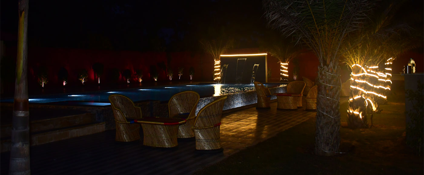 Aroma Green Farm is set amidst acres of manicured gardens and sprawling lawns. Take a leisurely stroll through our landscaped grounds or simply relax by the poolside, letting the soothing sounds of nature melt away your stress.